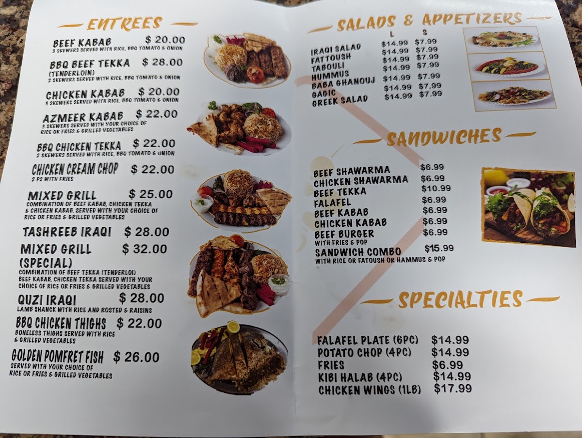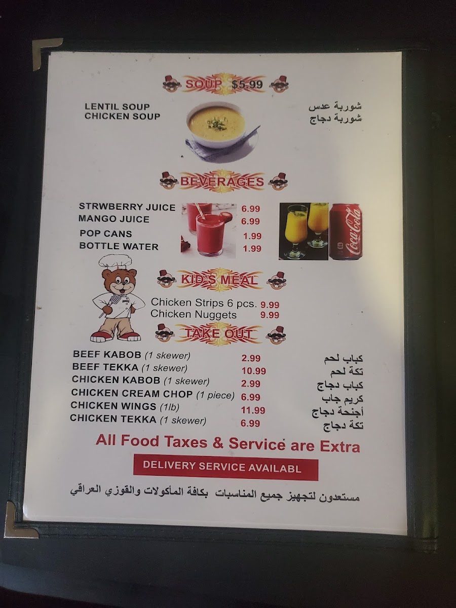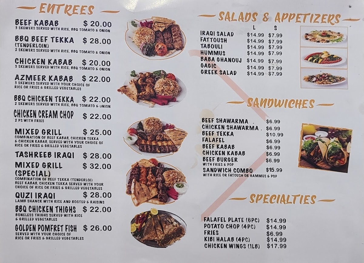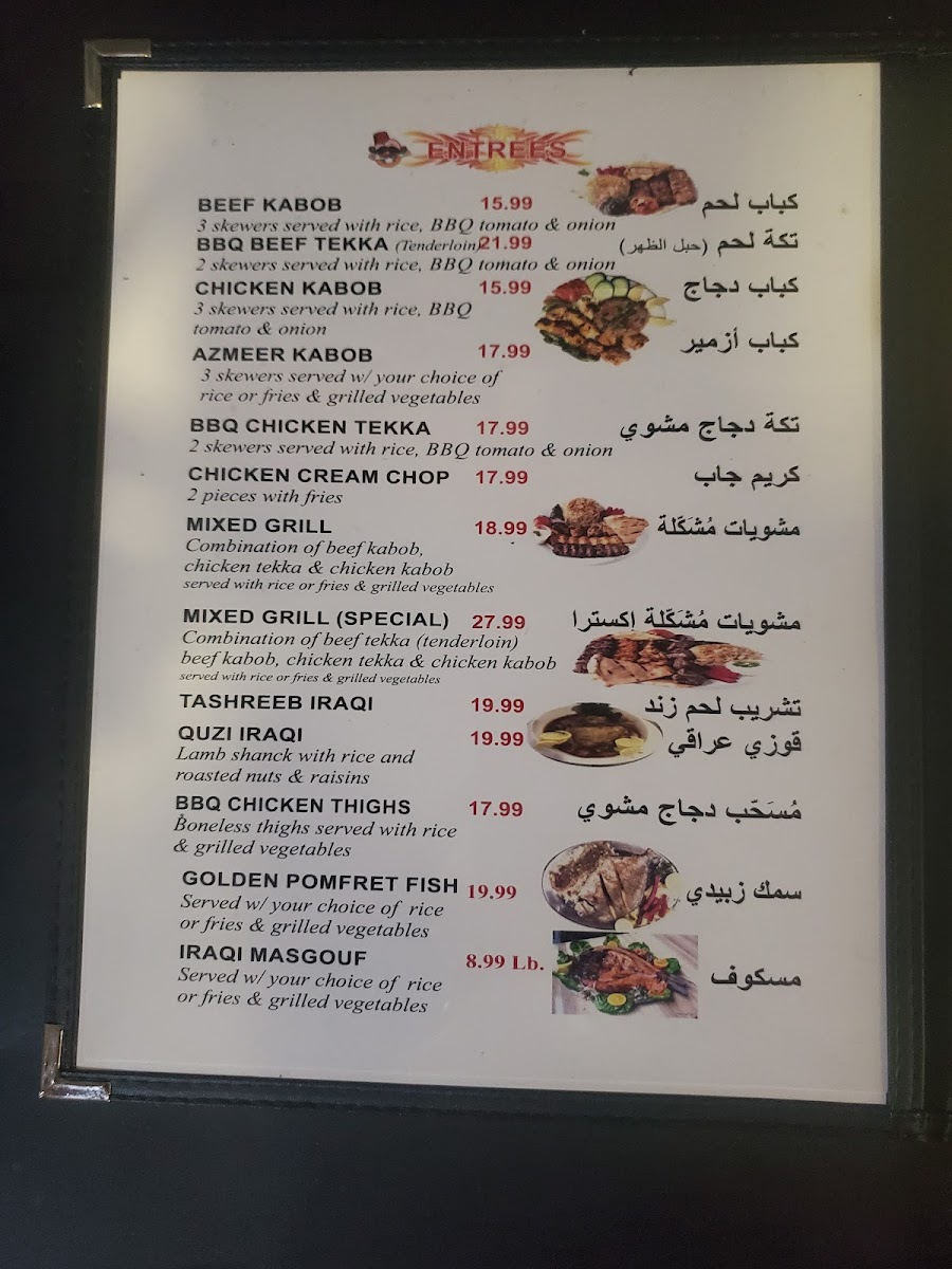 When it comes to entrées, Galaxy Grill doesn't disappoint. The menu includes hearty options like the Chicken Cream Chops (2 Pcs), the diverse Mixed Grill, and the flavorful Tashreeb Iraqi Special Mixed Grill. Additionally, the Azmeer Kabobs (3 Pcs) provide a savory experience for kabob lovers, making them an excellent choice for anyone craving tender, grilled meats.