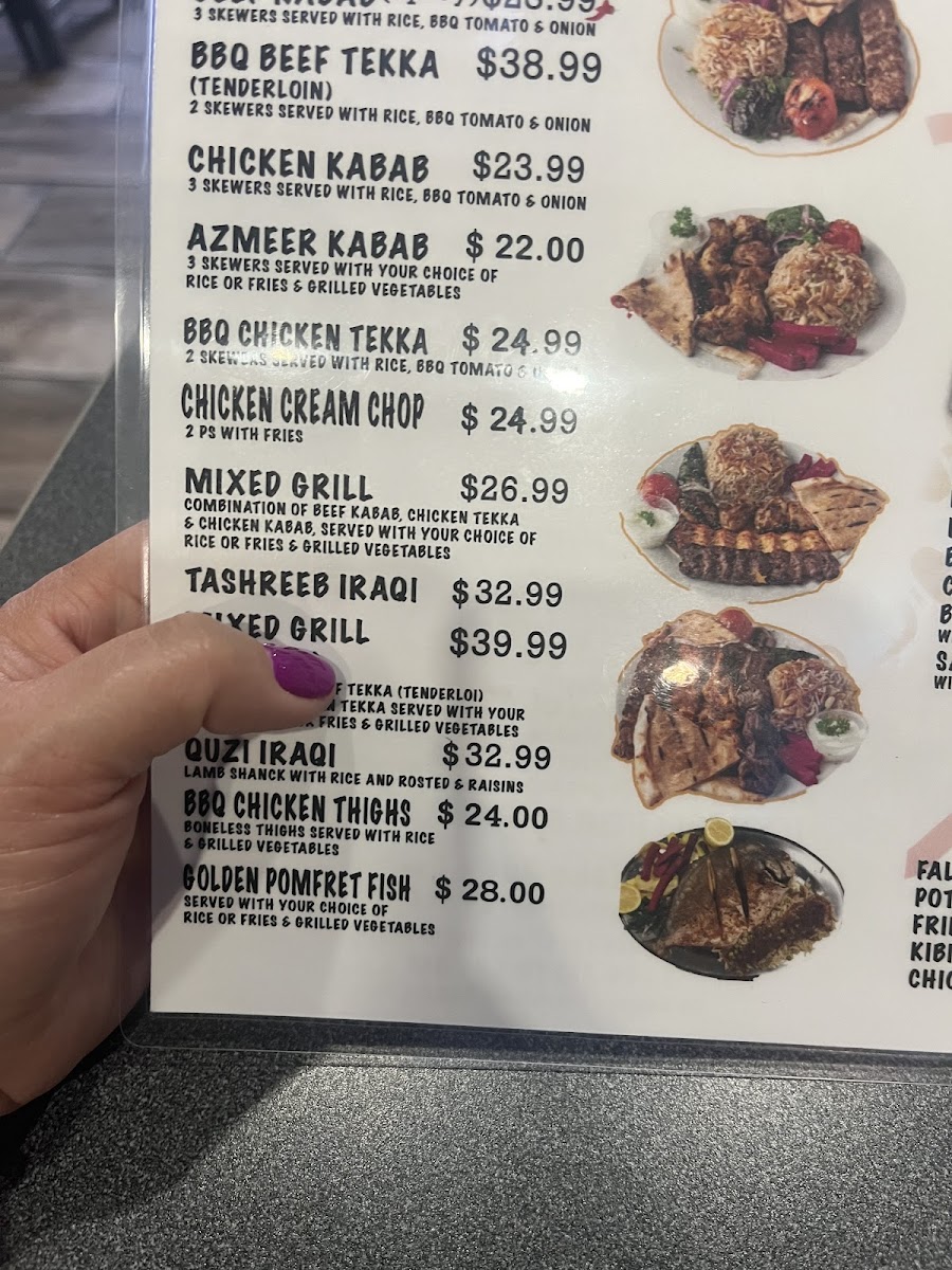 Combination of beef kabob, chicken Tikka, and chicken kabob. Served with rice or fries and grilled vegetables.
